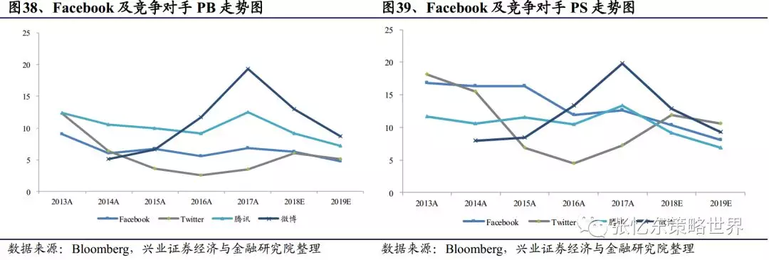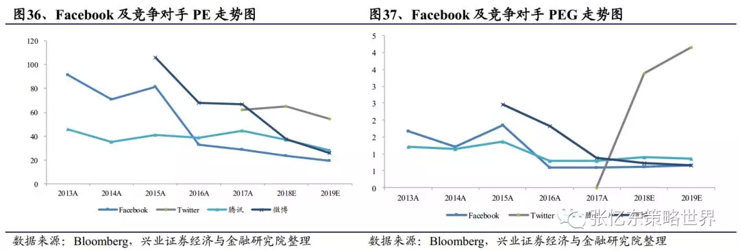 PE、PEG:Facebook的PE和PEG总体呈递减趋势,PE在2017年为28.65倍,处于同行业中较低水平;PEG甚至在2016和2017年达到0.6,而公司营收保持高增速,我们判断公司股票在该期间处于被低估状态。