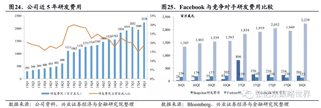 公司始终坚持以技术为本以支持用户社交平台运营。其研发投入比例稳定(20%左右),规模一直处于增长状态,是同业竞争者难以望其项背的。目前公司已将VR、AR、机器学习等技术嵌入至社交平台,配套数据中心已遍布全球30余个国家。