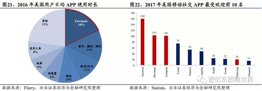 (三)区块链:社交行业包含大量原生数据、参与人数众多、信息保护成本较高,与区块链具有较高的契合性。Facebook任命副总裁马库斯带队研究区块链技术和数字加密货币,用于帮助Facebook对账户身份和加密数据进行验证,进一步提高用户隐私的安全性。更进一步来说,Facebook已拥有22亿用户,具备ICO的基础,创造去中心化的全球性货币或将成为下一时代的主题。