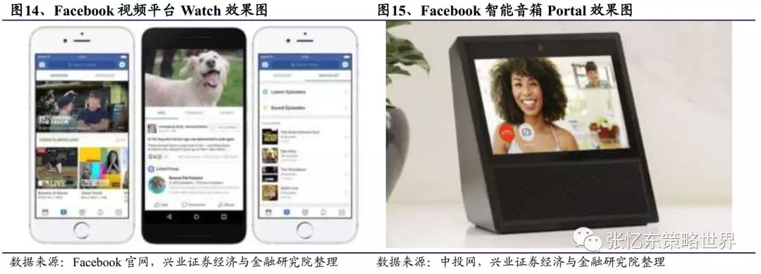4)社交网络+智能音箱:与市面上常见的智能音箱不同,Facebook的智能音箱Portal还配备镜头和触摸屏,以便于用户之间进行视频社交,而不是播放音乐或控制智能家居。除此之外,该设备可通过摄像头扫描房间、锁定人们的面部表情,传输到智能终端,实现远程交互、智能安防等功能。