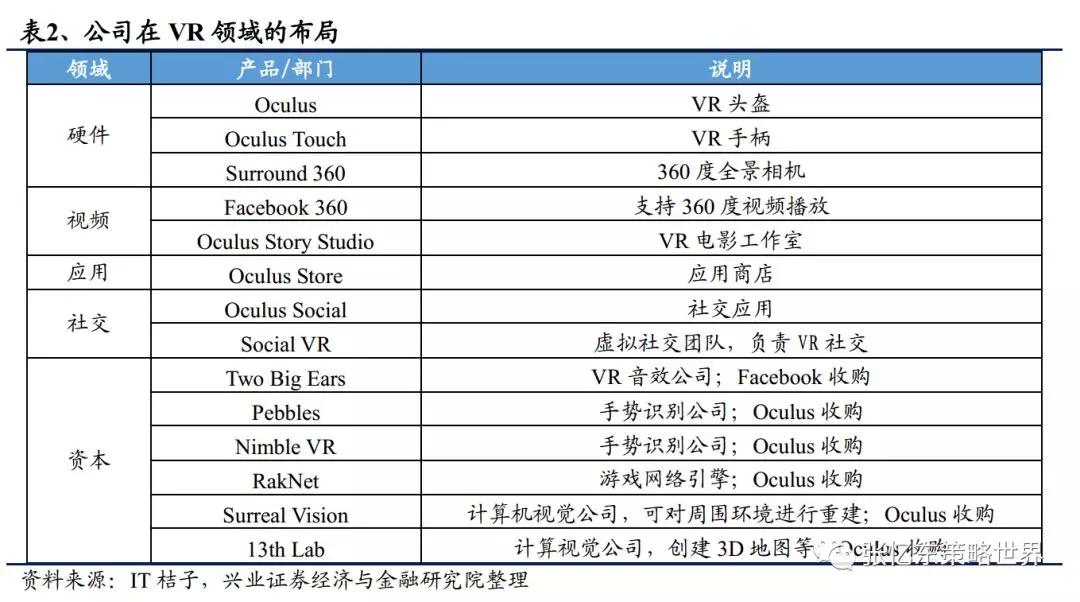 2014年公司以20亿美元收购Oculus,成为最早布局VR产业的社交公司,形成文字、图片、视频及VR的全媒体形式布局,完善用户体验。