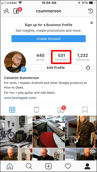 要删除您的关注者之一,请启动Instagram应用并转到您自己的个人资料。 点击关注者以查看关注您的所有人。