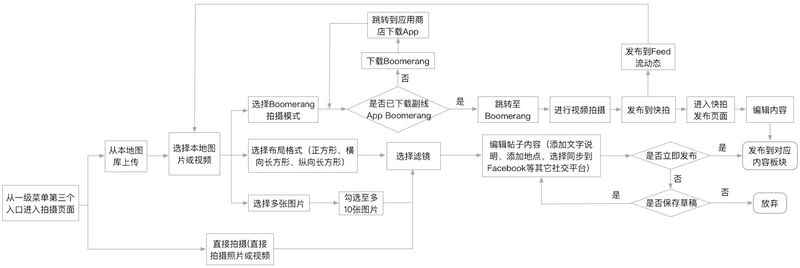 - 拍摄美观、有趣的照片用于分享:拍摄功能,滤镜等创作工具,发布内容到Feed流动态