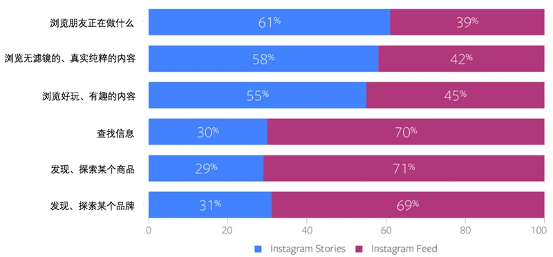 Facebook调研了几个国家的一万用户发现,在以下两种情况下,用户更倾向于浏览快拍而不是Feed流(Facebook调研数据,2017年10月):