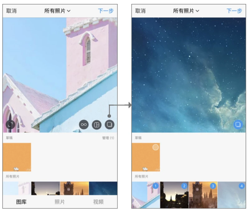 直接拍摄流程相对简单,但直接拍摄照片/视频只支持正方形格式,用户拍摄完后可以再进行编辑操作。