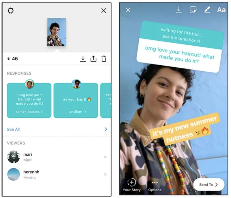 因此,这个功能是一个双向提问、作答的互动,而不是单纯让粉丝针对快拍发布者进行提问。而默认的问题示例 “问我一个问题”具有误导性,让很多用户直接使用了这个贴纸而未加修改,则会显得有过于以自我为中心的自恋感,这个特性在刚推出的两天内被许多用户吐槽,认为像ppt、太自恋等。