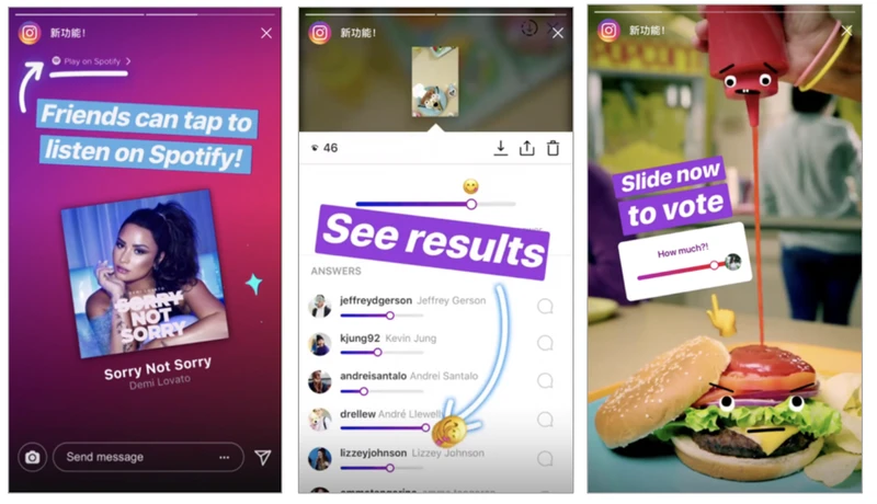 拖动滑动条回答问题,回答完毕后可以查看回答的平均值——但是这个投票不是匿名的,Instagram的初衷是为了让用户方便参考自己的好友、或其他信任的人的投票。