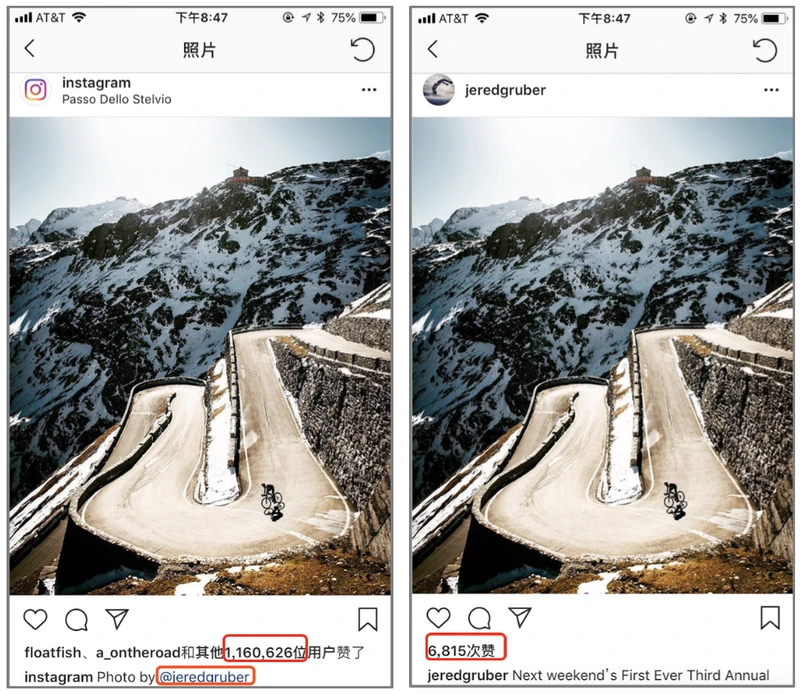 总体来看,Instagram更加突出具体内容的重要性地位,对于社交本身相对弱化,体现在以下几点(因为私密账号的特殊性,以公开账号为前提作分析):