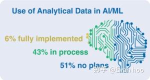 只有6%的受访者组织在数据科学项目中完全实施了分析数据的使用,而43%的组织正在这样做。51%的受访者没有计划将分析数据用于AI和ML项目。