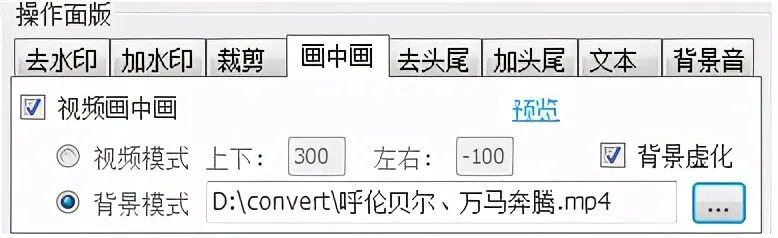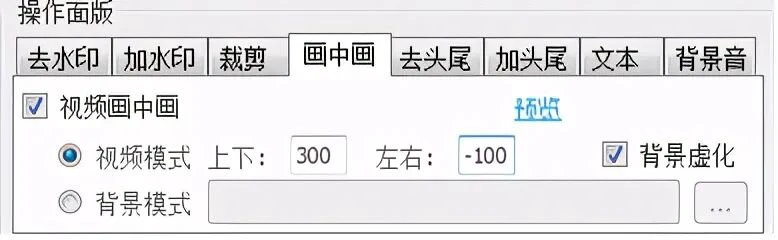 如上面视频,采用[视频模式],数值如是设计,勾选[背景虚化],即可实现视频有横屏到竖屏的 转换,如图所示: