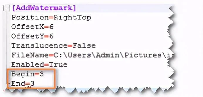 配置文件中,加入了 Begin 及 End 并设其值,水印即可在片头及片尾,显示指定秒数。