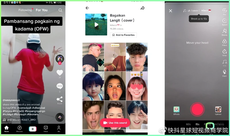 在TikTok,你可以很轻松地使用合拍功能,与你所看到的有趣视频进行一左一右的合拍。