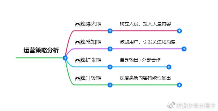 运营策略:坚定树立人设,大量投入内容,调性要与人设一致,只需要铺量,给受众留下印象。