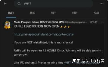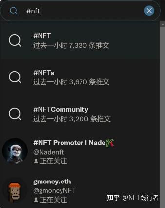 举个栗子,当你对NFT感兴趣想找到更多的关于NFT的信息的时候,就可以直接在搜索栏里搜索#NFT,结果预览里就能看到过去一小时有多少条推文。