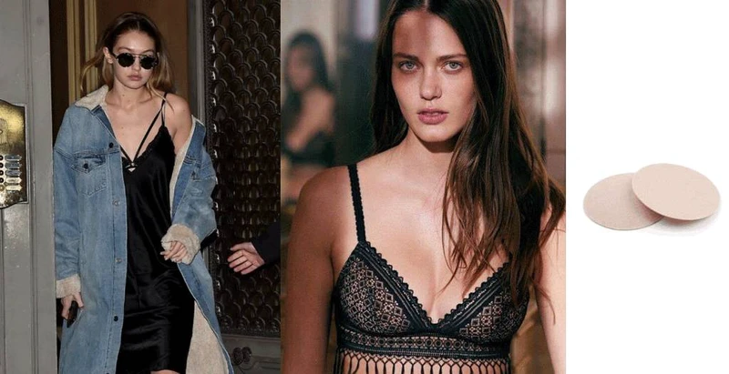 2. 选择一些轻薄的 bralette,同时注意肩带不能太宽,且最好是深色或者与裙子同色。如果觉得蕾丝内衣太轻薄担心激凸,还有一种裸色的胸垫神器可以塞在 bra 里。