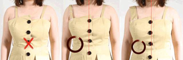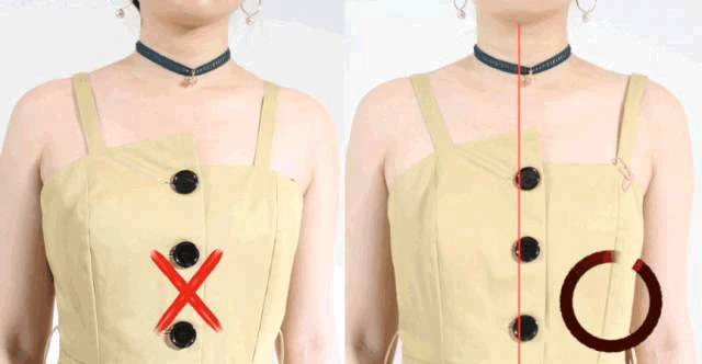 其实,这都是不同的肩带位置所带来的结果。当领型和吊带的粗细确定时,吊带的位置越靠近肩膀中间越显壮,越靠近肩膀两侧越瘦。