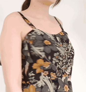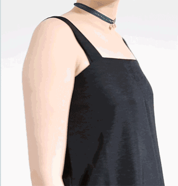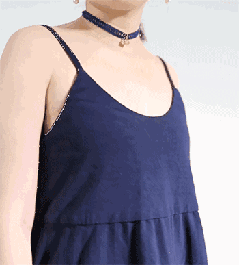 如果吊带裙的袖窿太深,那么胸侧和腋下走光的几率会更大,并且露出的内衣也会越多。这种情况估计大部分的姑娘都不太能接受,毕竟好好地裙子突然露出个内衣还是很影响美感滴~