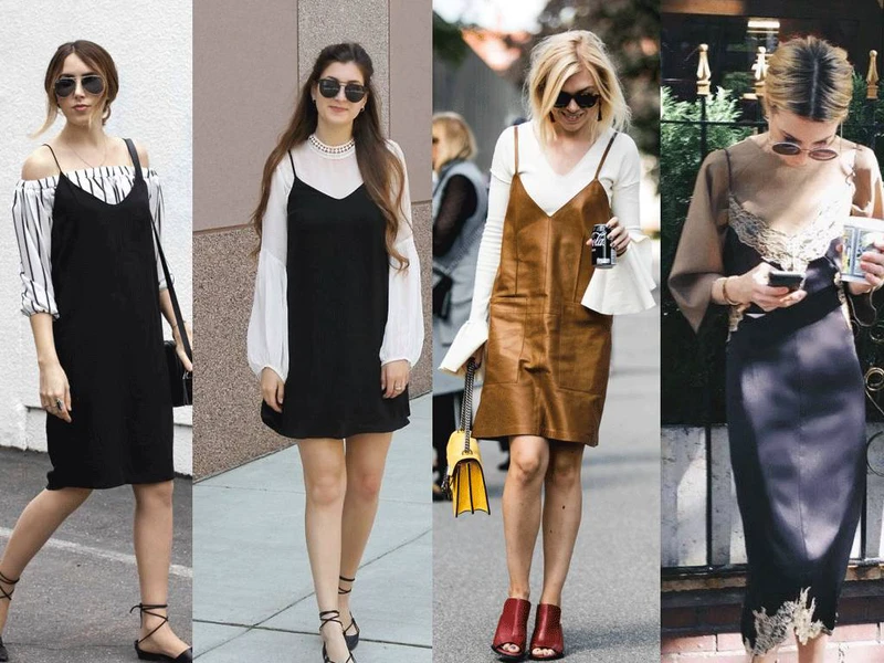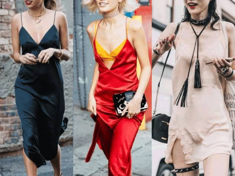 三条都是 slip dress,也属于吊带裙,特点是垂顺的面料,和偏 H 的修身剪裁。它原本是女士衬裙,20世纪末才出现外穿的趋势。