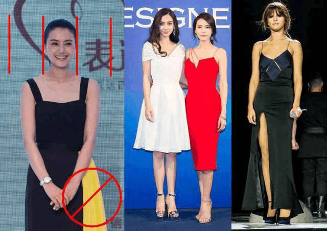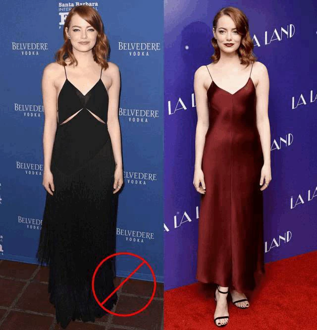 还有,同样的肩带宽度,相似的领型,为什么右边的石头姐看起来那么美,左边的石头姐看起来那么壮?