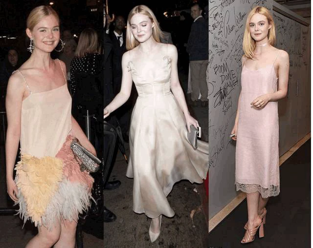 而除了 Belle 这种走性感路线的,还有很多清纯 girl 也爱吊带裙。比如,最近的时尚小花 Elle Fanning,肤白貌美再加上天真可爱的长相,穿上吊带裙,居然展现出肉感少女的清纯一面~