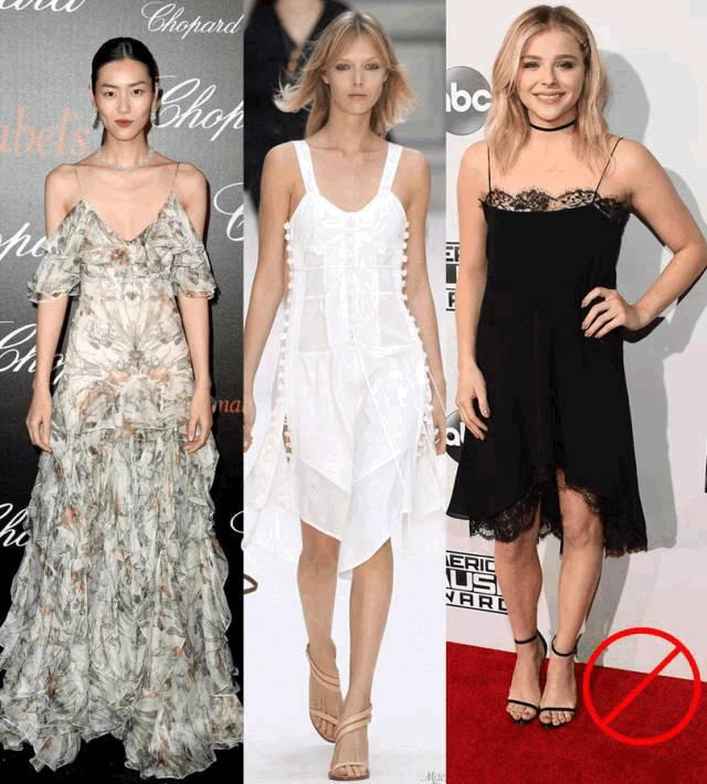 如果头肩比偏大,最好和宽肩带 say goodbye,否则会分分钟变身「大头娃娃」!这类身材比较典型的是傻脸娜和高圆圆,她俩都是穿细肩带美翻,穿粗肩带丑哭的代表..……